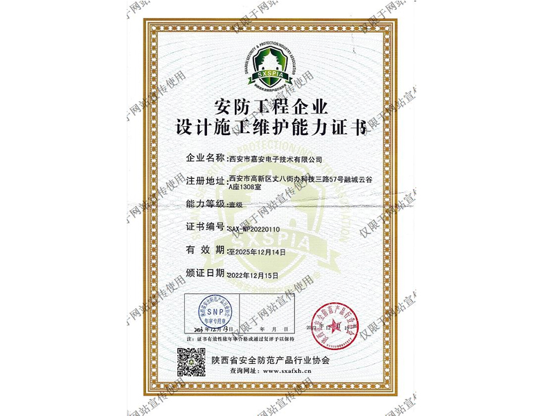 安防工程企业设计施工维护能力证书(省安防证书)