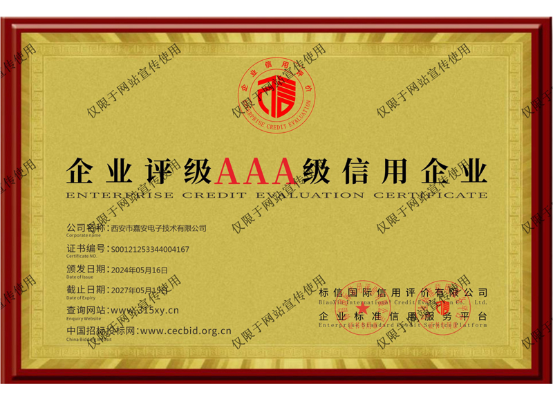 企业评级AAA级信用企业