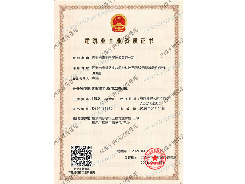 建筑装修装饰工程专业承包 机电工程总承包资质证书